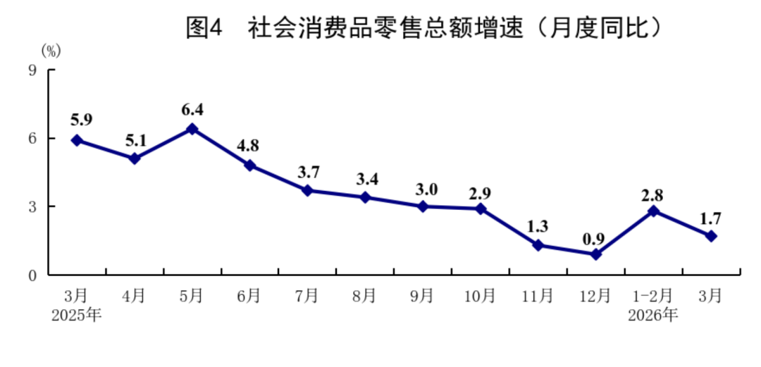 ◆ 一季度,社会徒然品零卖总数127695亿元,同比增长2.4%,比上年四季度加速0.7个百分点
