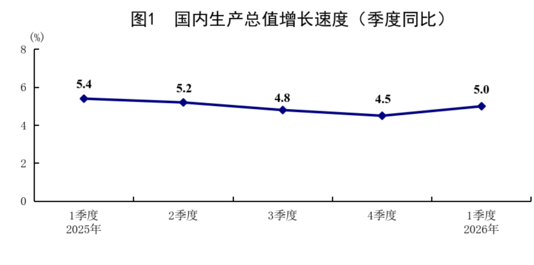 ◆ 初步核算,一季度国内分娩总值334193亿元,按不变价钱打算,同比增长5.0%,比上年四季度加速0.5个百分点