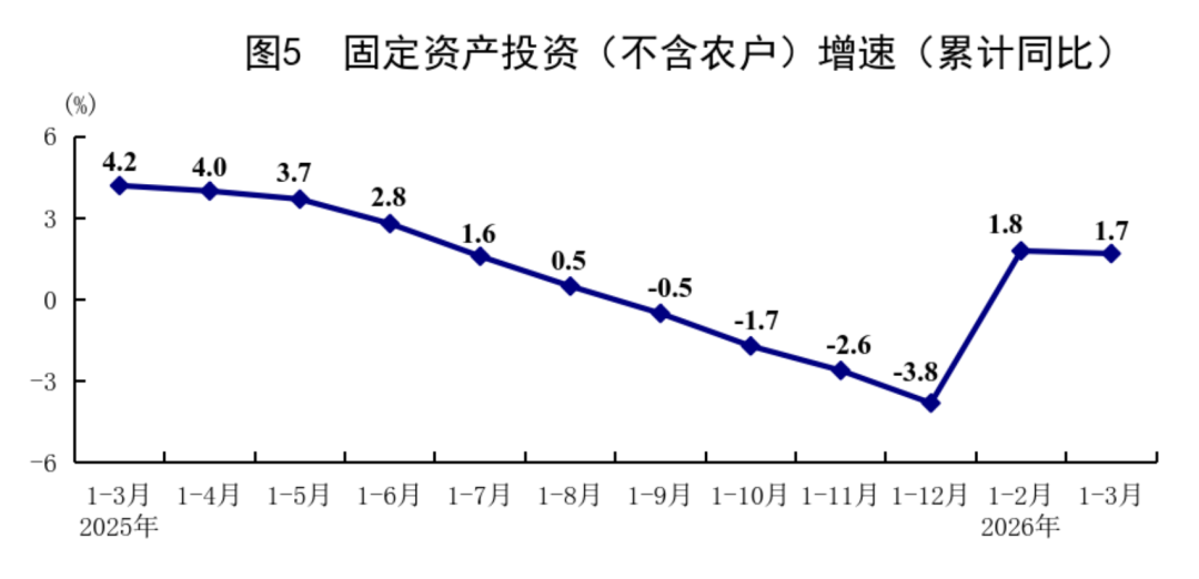 ◆ 一季度,宇宙固定钞票投资(不含农户)102708亿元,同比增长1.7%,上年全年为下落3.8%;扣除房地产开导投资,宇宙固定钞票投资增长4.8%