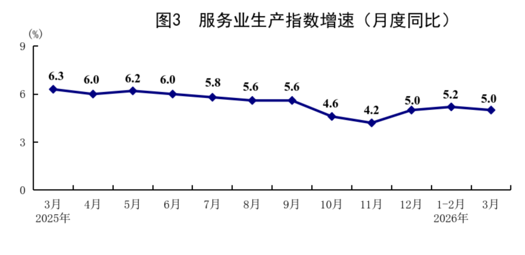◆ 一季度,服务业加多值同比增长5.2%