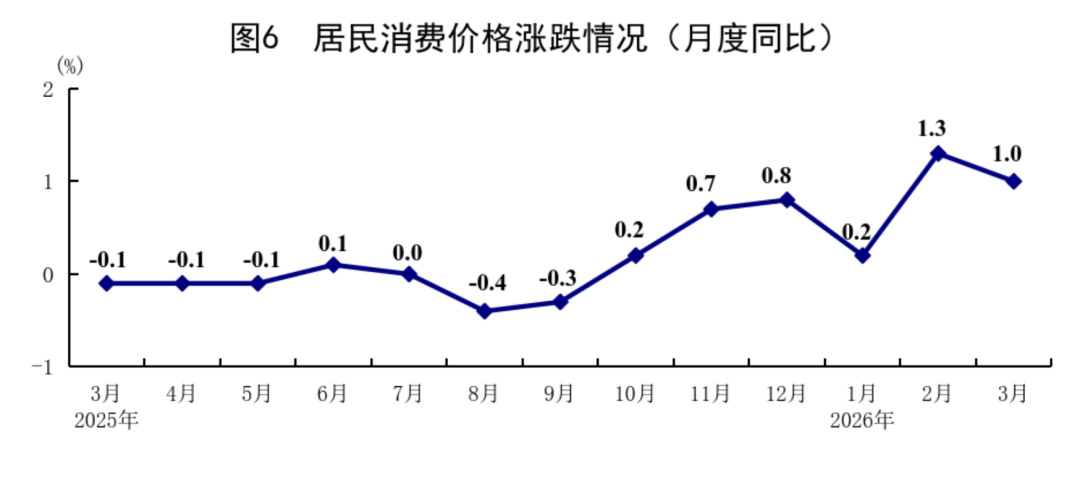 ◆ 一季度,宇宙住户徒然价钱(CPI)同比高涨0.9%,涨幅比上年四季度扩大0.4个百分点